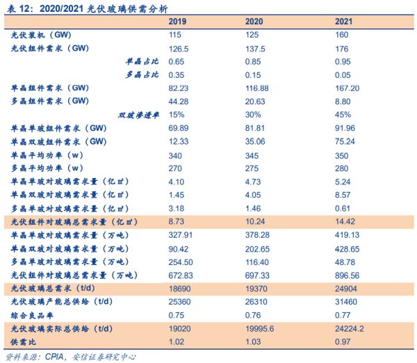根据以上测算,2020 年光伏玻璃整体供需略偏宽松,2021 年供需偏紧,随着今年下半年国 内和海外需求共振,光伏玻璃供需格局将偏紧,预计 Q4 光伏玻璃价格有望显著反弹,事实 上,上周部分 3.2mm 镀膜玻璃价格已由 24 元/平方米上涨至 25 元/平方米左右。