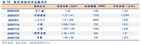 组件:受上游涨价刺激,招标企稳回升