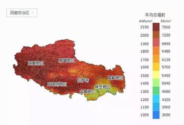 由于海拔高、纬度低、大气洁净、空气干燥,所以西藏的太阳总辐射量很大。