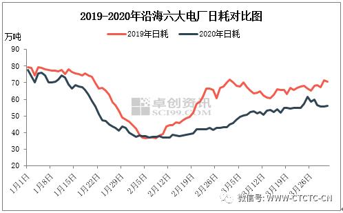 进入3月份以后随着南方工业企业陆续复产,电厂日耗小幅攀升,但受国际公共卫生事件的影响,国内多个地区外贸企业生产受到较明显的影响,企业开工率受限,导致工业用电需求回升缓慢。另外随着天气转暖,民用电负荷减少,电厂日耗上升空间有限。