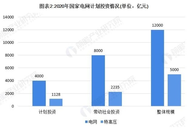 根据国家电网计划,2020年初步安排电网投资4000亿元以上,可带动社会投资8000多亿元,整体规模将达到1.2万亿元。特高压建设项目明确投资规模1128亿元,可带动社会投资2235亿元,整体规模近5000亿元。
