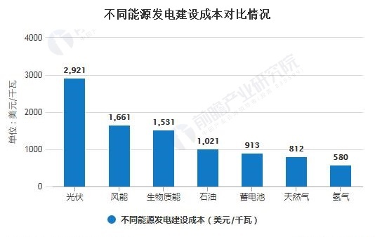 从不同能源的燃油热值与发电建设成本方面考虑,氢能源均具优势。从燃料热值角度看,氢能源高于天然气、汽油、煤和乙醇等其他能源。氢气燃料热值几乎是其他化石燃料的3倍多。从发电建设成本来讲,氢能源发电建设成本最低。 EIA数据显示,氢气发电建设成本仅580美元/千瓦,在光伏、风能、天然气、 生物质能、石油发电等众多方式中成本最低。