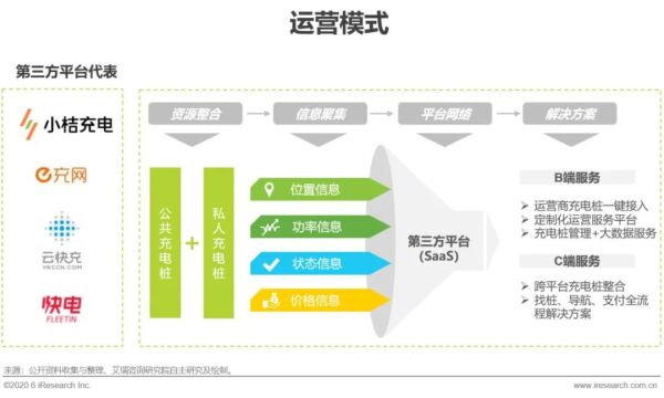 第三方充电平台一般不直接参与充电桩的投资建设,通过自身的资源整合能力将各大运营商的充电桩接入自家SaaS平台,以智能管理为依托提供商业价值,其独特的流量优势使其他企业短期内难以复制。以平台为主导的运营模式可打通不同运营商之间的互联互通,为用户提供更便捷的一站式充电体验。此种模式的收益来源于与运营商的服务费分成和以大数据挖掘为基础的增值服务,因此与运营商之间会存在部分利益冲突,一旦头部运营商退出合作第三方平台的价值将难以体现。因此需要在合作建立之初明确利益关系,稳定流量优势后,以增值服务为切入点完善运营模式。