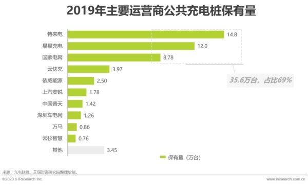 截至2019年,充电桩保有量超过8万台的运营商有三家,保有量达35.6万台,占比69%。行业集中度较高,头部企业优势显著。同时地方性小企业充电桩数量也在稳定增长,目前已经形成以头部企业为主,小型企业为辅的局面。然而目前充电桩行业处于初期向中期过渡的环节,并且充电桩数量仍未达到国家目标,因此行业格局并未完全形成定论。
