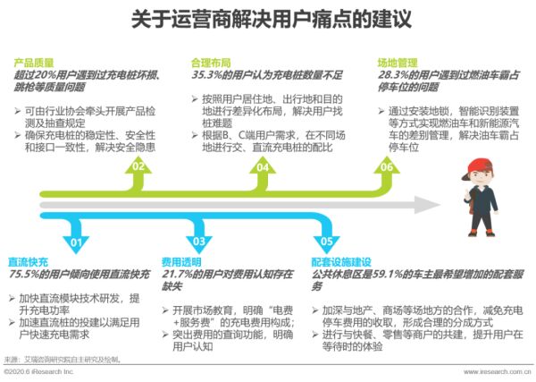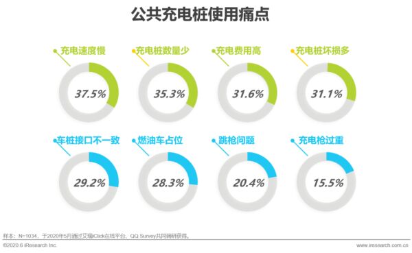 产品质量、技术制约、前期运营和社会因素等多种因素共同导致了多种用户实际使用充电桩时的不便。充电速度慢、充电桩数量少和费用高同时加大了车主用车的隐形成本,成为公共充电桩用户的三大痛点。而由于新国标的出台和运营商对于产品质量的把控愈加严格,充电桩跳枪及枪头过重的问题得到部分改善。